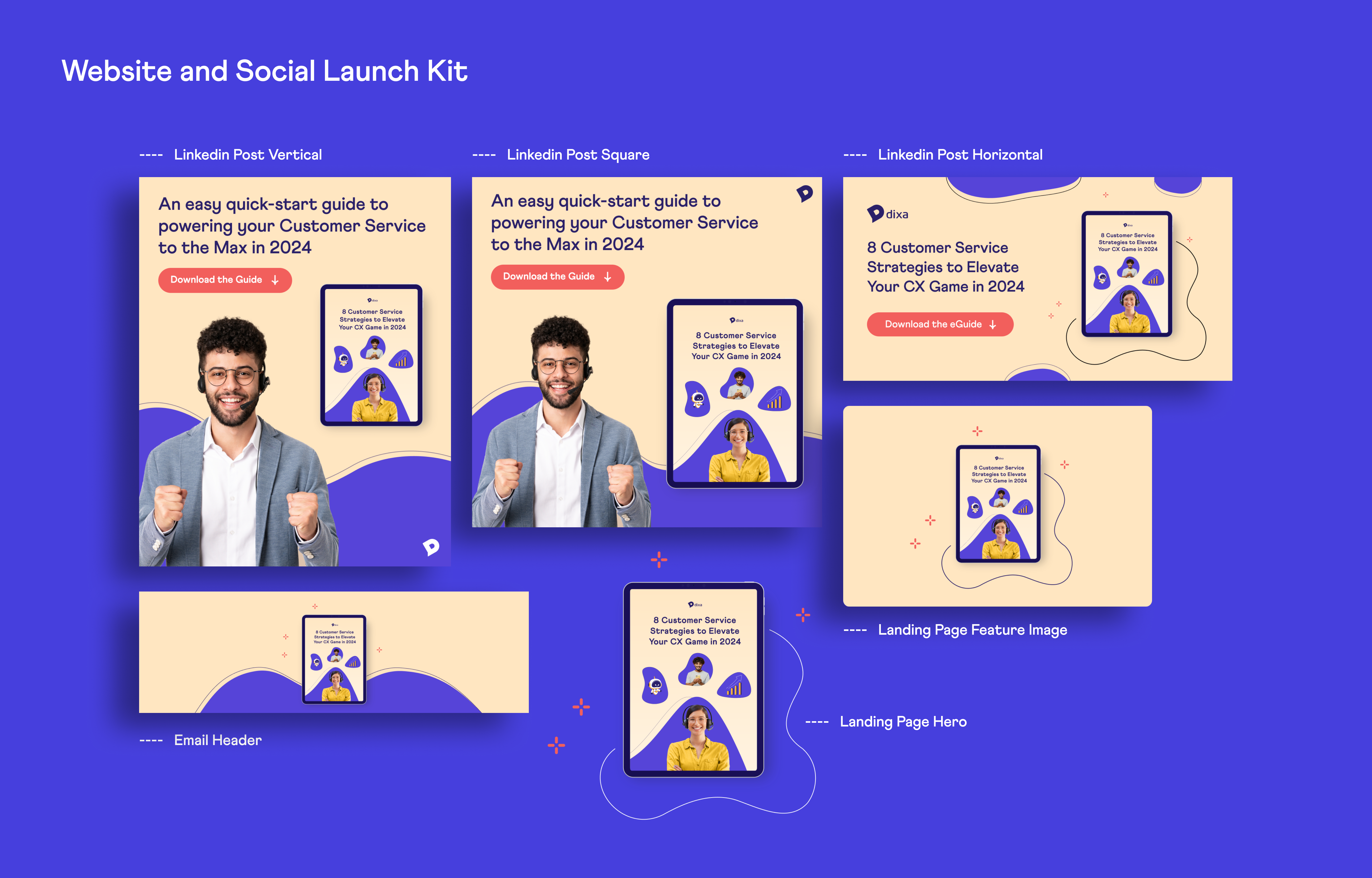 Focusing on craft, scalability and impact, I re-designed the Dixa’s homepage, created a motion language for product launches and built creative assets and template libraries for eBooks, customer stories, blog, events and more.