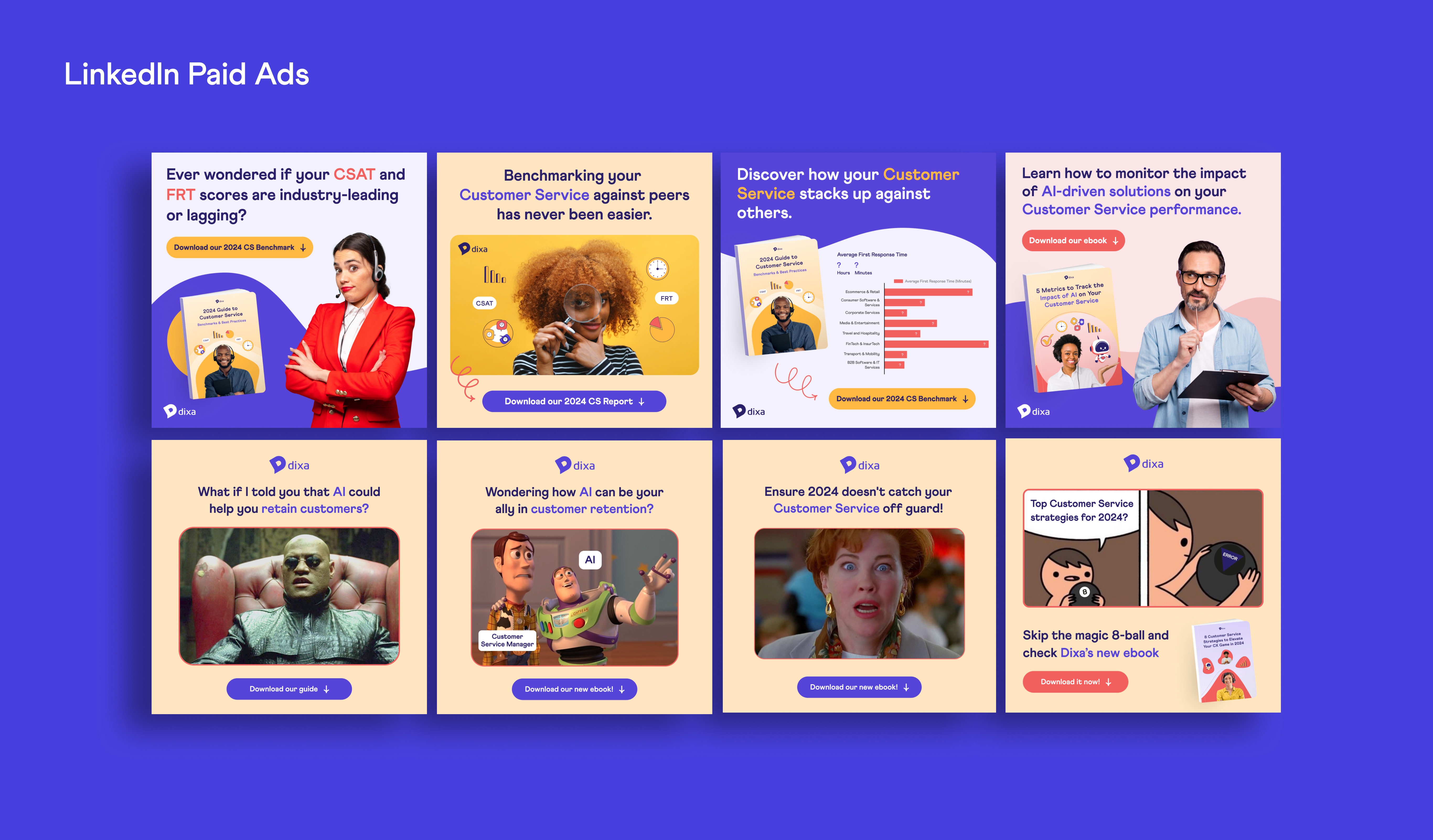 As Brand Designer at Dixa, I owned the visual brand and led multi-channel asset development across web, social, print, and events. I partnered with Marketing, Product, and Sales to maintain brand consistency, support key launches, and strengthen Dixa’s identity in a crowded SaaS market.